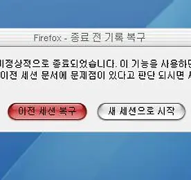 파이어폭스 세션 복구 기능 중지시키기 파이어폭스는 예상치 못한 상황에 종료가 되면 다음 실행시 '세션 복구' 기능이 활성화되 종료전 웹 페이지를 그대로 불러오는 기능이 있습니다. 이 기능은 참 좋은 기능이지만 그 컴퓨터를 여러명과 같이 사용하게 된다면 세션 복구 기능은 그리 유쾌한 기능이 아니게 됩니다. 이 세션 기능을 꺼주려면 아래와 같이 설정해 주세요. 아울러, 이 기능을 중지 시키면 파이어폭스의 속도 또한 증가합니다. 아주 좋죠? 파이어폭스를 실행 시키신 후 주소창에 about:config 을 입력 하시면 설정창이 나옵니다. 이 설정창의 필터에 session 이라고 써주시면 browser.sessionstore.enabled 라는 목록을 볼 수 있습니다. 여기서 true 항목을 더블 클릭해서 false 로 바꿔 주시면 세션 기능을 정지.. 더보기 이전 1 ··· 181 182 183 184 185 186 187 ··· 243 다음